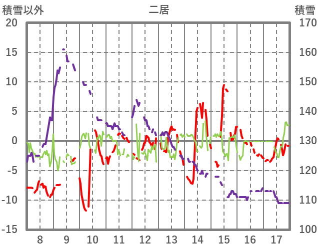 | 日 | 時 | 気温 | 降水 | 風向/風速 | 日照 | 積雪 | 降雪 |