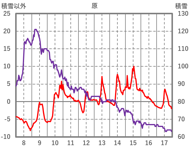 | 日 | 時 | 気温 | 降水 | 風向/風速 | 日照 | 積雪 | 降雪 |