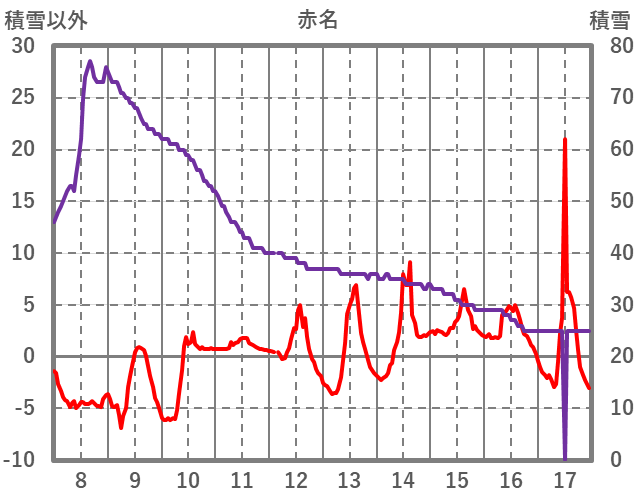 | 日 | 時 | 気温 | 降水 | 風向/風速 | 日照 | 積雪 | 降雪 |