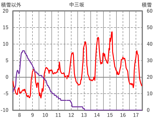 | 日 | 時 | 気温 | 降水 | 風向/風速 | 日照 | 積雪 | 降雪 |