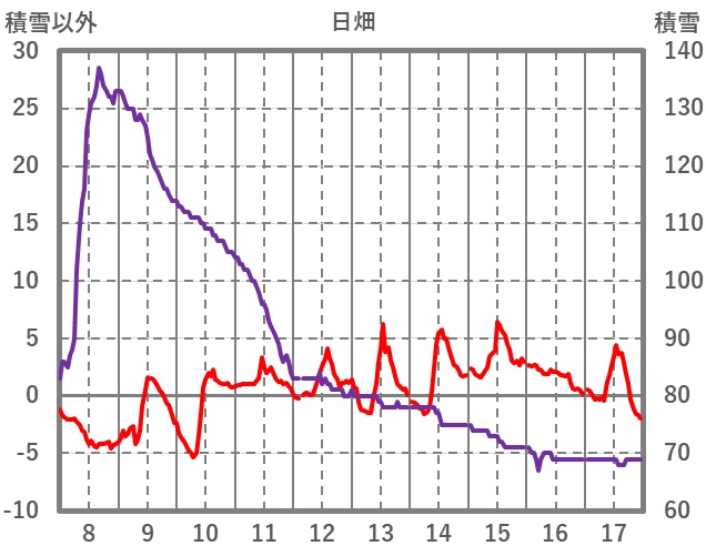 | 日 | 時 | 気温 | 降水 | 風向/風速 | 日照 | 積雪 | 降雪 |