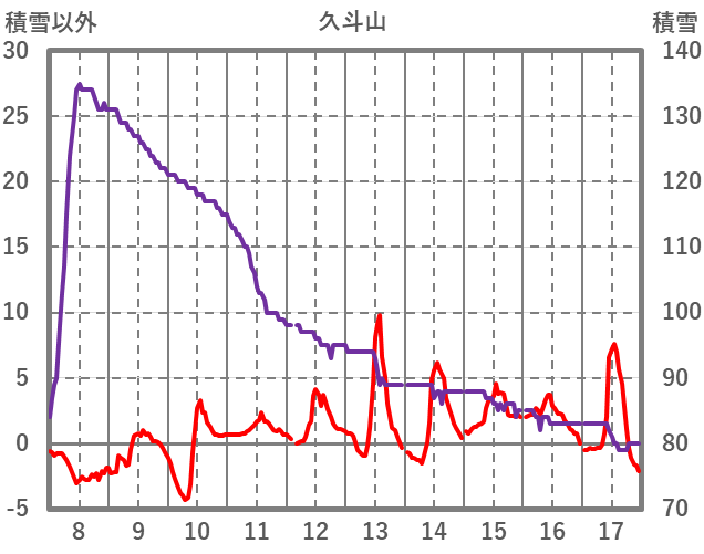 | 日 | 時 | 気温 | 降水 | 風向/風速 | 日照 | 積雪 | 降雪 |