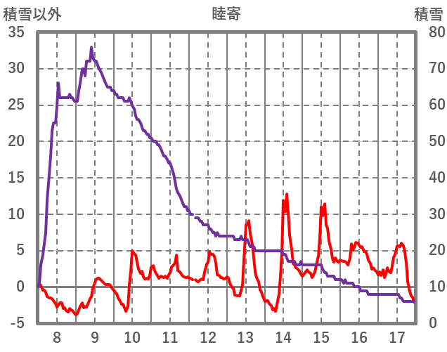| 日 | 時 | 気温 | 降水 | 風向/風速 | 日照 | 積雪 | 降雪 |