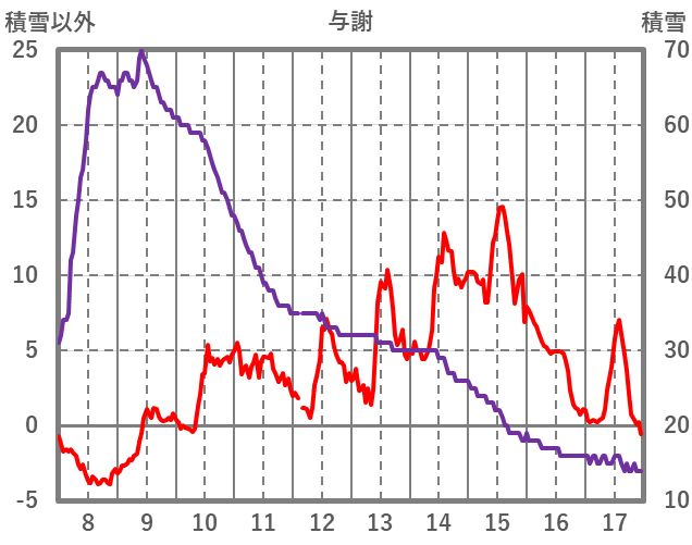 | 日 | 時 | 気温 | 降水 | 風向/風速 | 日照 | 積雪 | 降雪 |