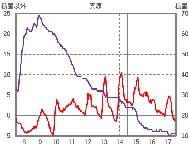 | 日 | 時 | 気温 | 降水 | 風向/風速 | 日照 | 積雪 | 降雪 |