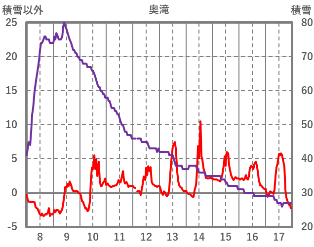 | 日 | 時 | 気温 | 降水 | 風向/風速 | 日照 | 積雪 | 降雪 |