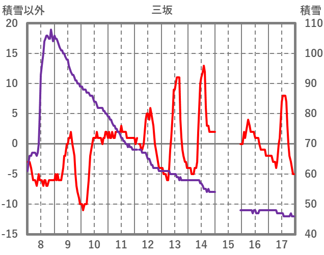 | 日 | 時 | 気温 | 降水 | 風向/風速 | 日照 | 積雪 | 降雪 |