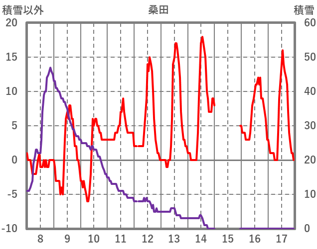 | 日 | 時 | 気温 | 降水 | 風向/風速 | 日照 | 積雪 | 降雪 |