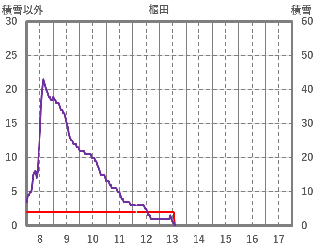 | 日 | 時 | 気温 | 降水 | 風向/風速 | 日照 | 積雪 | 降雪 |