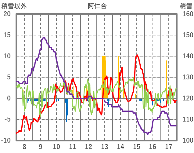 | 日 | 時 | 気温 | 降水 | 風向/風速 | 日照 | 積雪 | 降雪 |