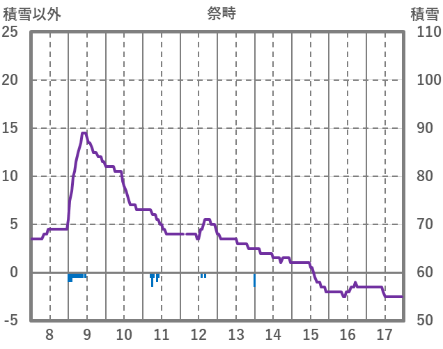 | 日 | 時 | 気温 | 降水 | 風向/風速 | 日照 | 積雪 | 降雪 |