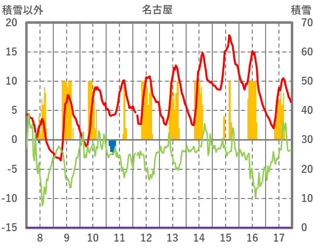 | 日 | 時 | 気温 | 降水 | 風向/風速 | 日照 | 積雪 | 降雪 |