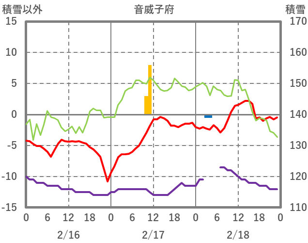 | 日 | 時 | 気温 | 降水 | 風向/風速 | 日照 | 積雪 | 降雪 |