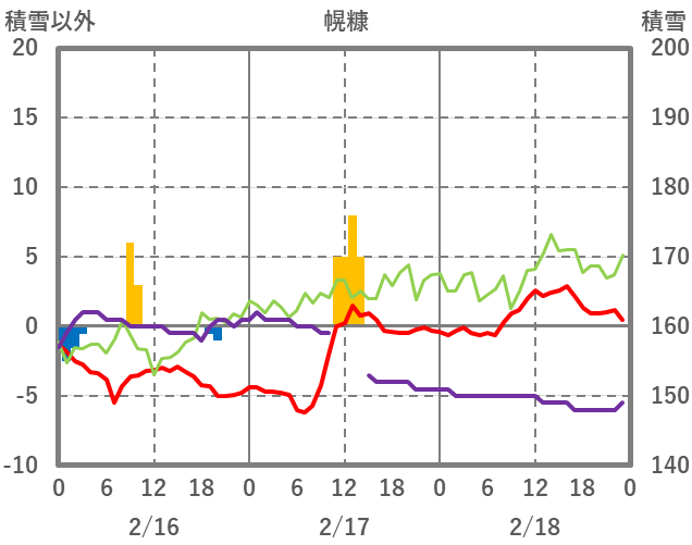 | 日 | 時 | 気温 | 降水 | 風向/風速 | 日照 | 積雪 | 降雪 |