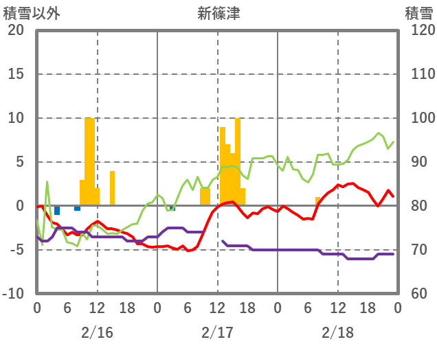 | 日 | 時 | 気温 | 降水 | 風向/風速 | 日照 | 積雪 | 降雪 |