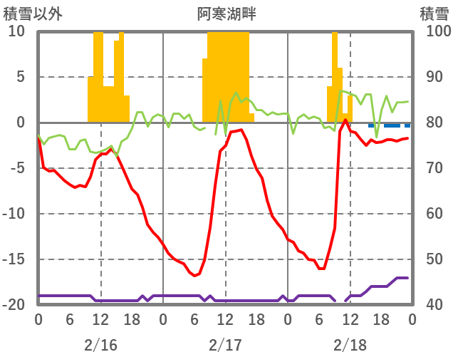 | 日 | 時 | 気温 | 降水 | 風向/風速 | 日照 | 積雪 | 降雪 |