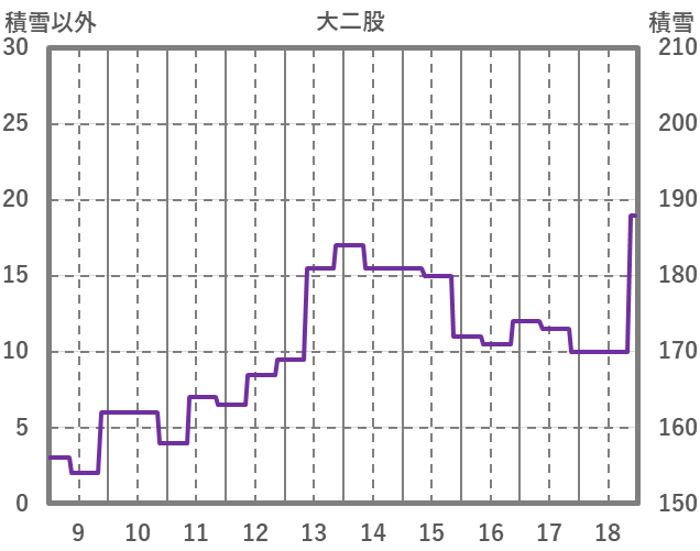 | 日 | 時 | 気温 | 降水 | 風向/風速 | 日照 | 積雪 | 降雪 |