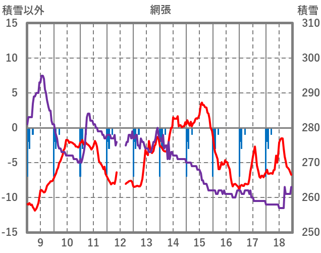 | 日 | 時 | 気温 | 降水 | 風向/風速 | 日照 | 積雪 | 降雪 |