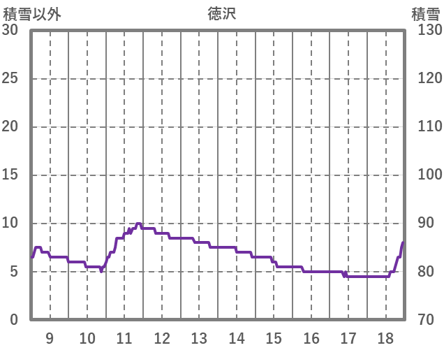 | 日 | 時 | 気温 | 降水 | 風向/風速 | 日照 | 積雪 | 降雪 |