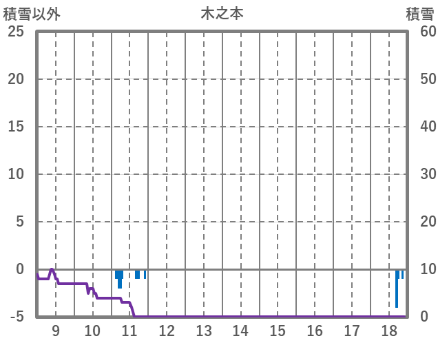 | 日 | 時 | 気温 | 降水 | 風向/風速 | 日照 | 積雪 | 降雪 |