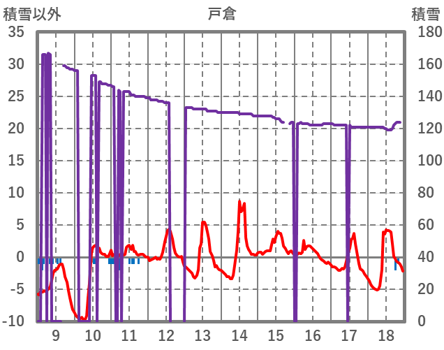 | 日 | 時 | 気温 | 降水 | 風向/風速 | 日照 | 積雪 | 降雪 |