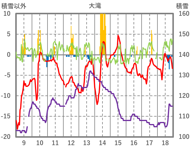 | 日 | 時 | 気温 | 降水 | 風向/風速 | 日照 | 積雪 | 降雪 |