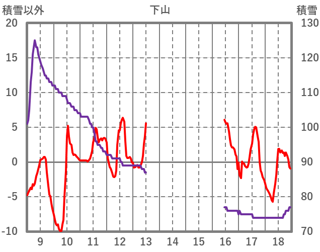 | 日 | 時 | 気温 | 降水 | 風向/風速 | 日照 | 積雪 | 降雪 |