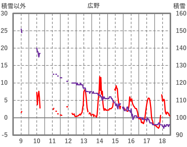 | 日 | 時 | 気温 | 降水 | 風向/風速 | 日照 | 積雪 | 降雪 |