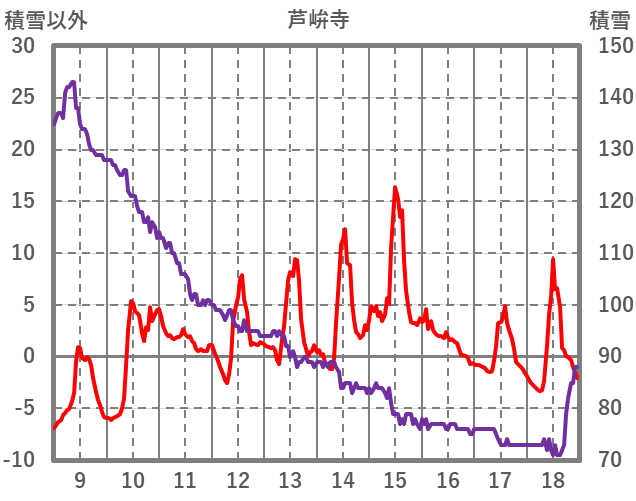 | 日 | 時 | 気温 | 降水 | 風向/風速 | 日照 | 積雪 | 降雪 |
