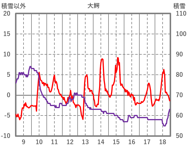| 日 | 時 | 気温 | 降水 | 風向/風速 | 日照 | 積雪 | 降雪 |