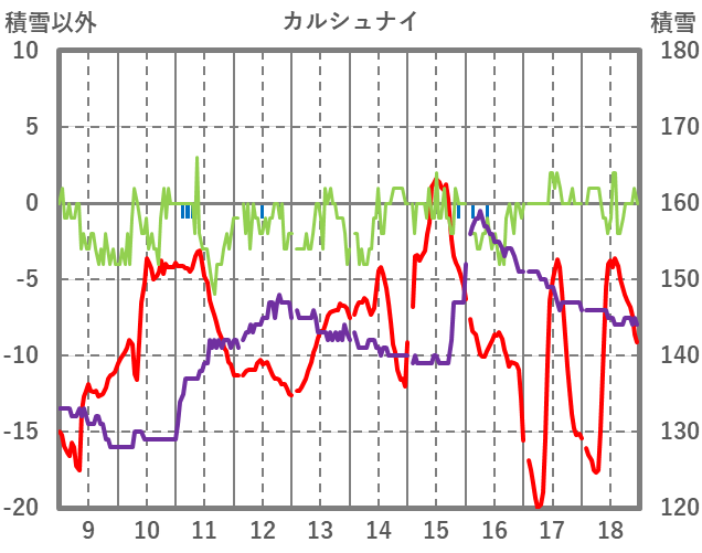 | 日 | 時 | 気温 | 降水 | 風向/風速 | 日照 | 積雪 | 降雪 |