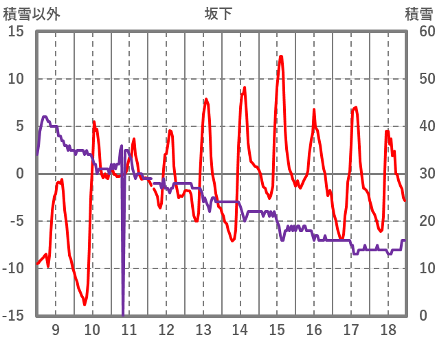 | 日 | 時 | 気温 | 降水 | 風向/風速 | 日照 | 積雪 | 降雪 |