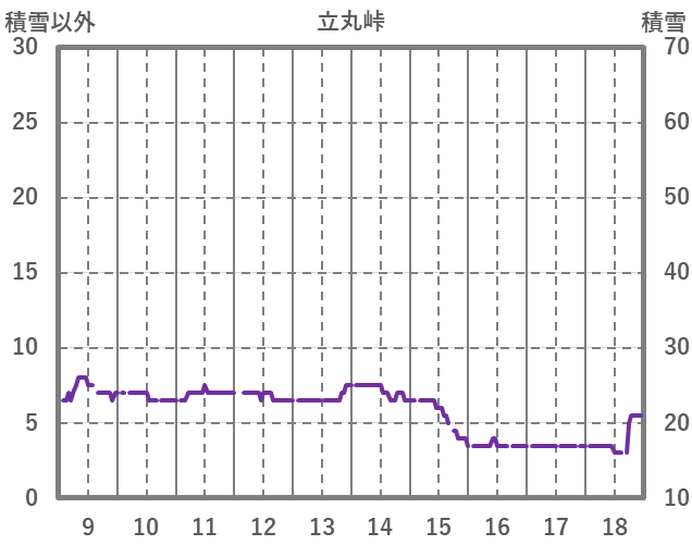 | 日 | 時 | 気温 | 降水 | 風向/風速 | 日照 | 積雪 | 降雪 |