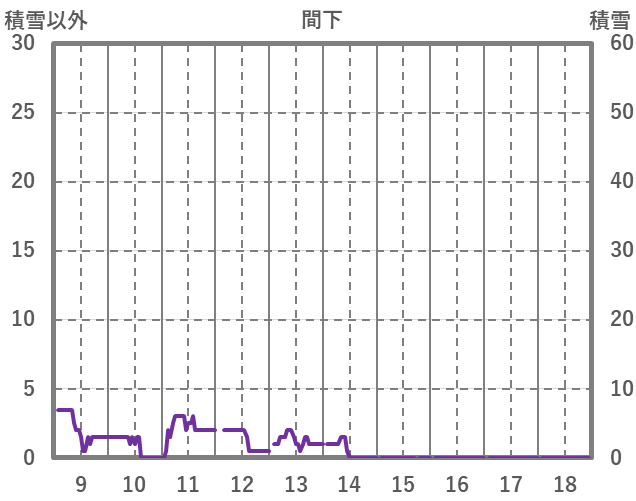 | 日 | 時 | 気温 | 降水 | 風向/風速 | 日照 | 積雪 | 降雪 |