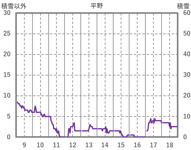 | 日 | 時 | 気温 | 降水 | 風向/風速 | 日照 | 積雪 | 降雪 |
