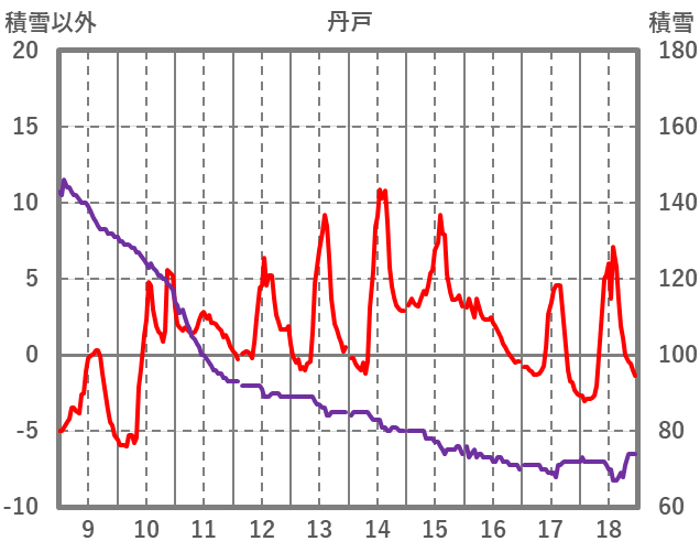 | 日 | 時 | 気温 | 降水 | 風向/風速 | 日照 | 積雪 | 降雪 |