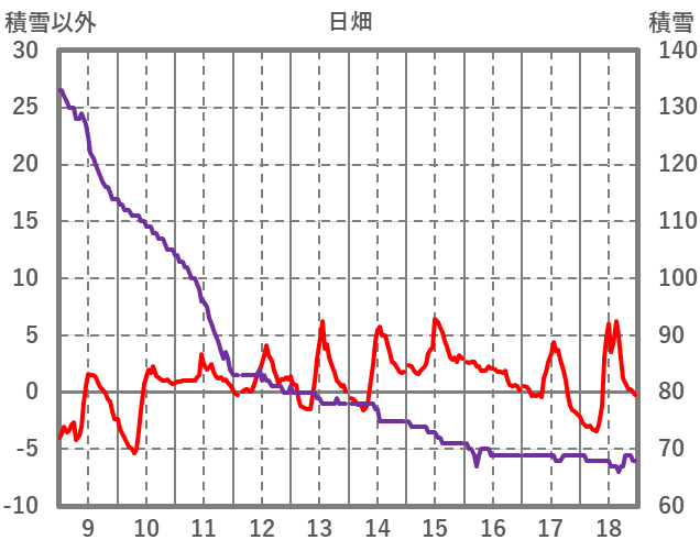 | 日 | 時 | 気温 | 降水 | 風向/風速 | 日照 | 積雪 | 降雪 |