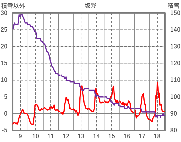 | 日 | 時 | 気温 | 降水 | 風向/風速 | 日照 | 積雪 | 降雪 |