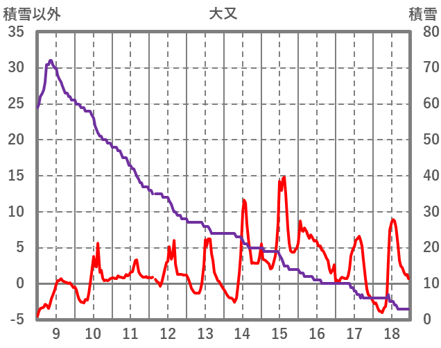 | 日 | 時 | 気温 | 降水 | 風向/風速 | 日照 | 積雪 | 降雪 |