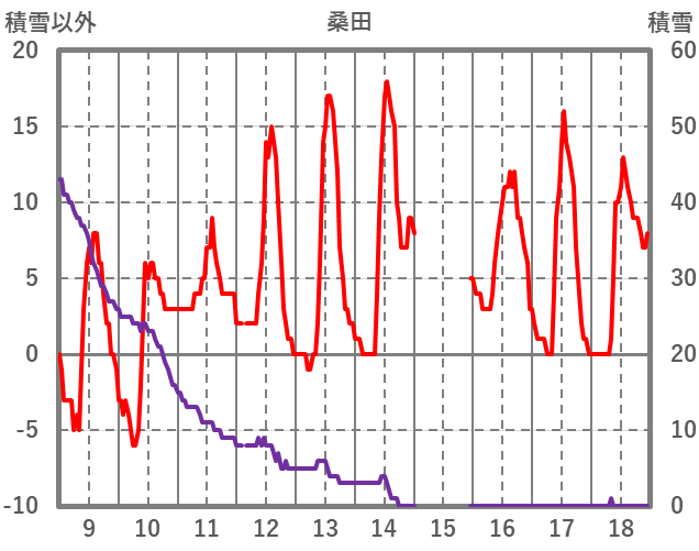 | 日 | 時 | 気温 | 降水 | 風向/風速 | 日照 | 積雪 | 降雪 |