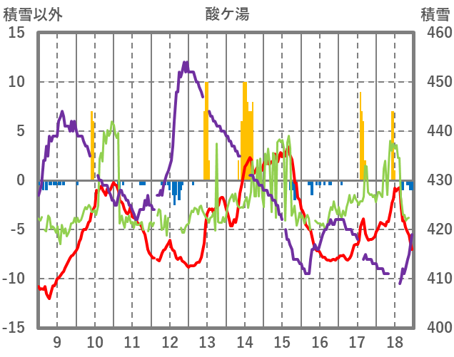 | 日 | 時 | 気温 | 降水 | 風向/風速 | 日照 | 積雪 | 降雪 |