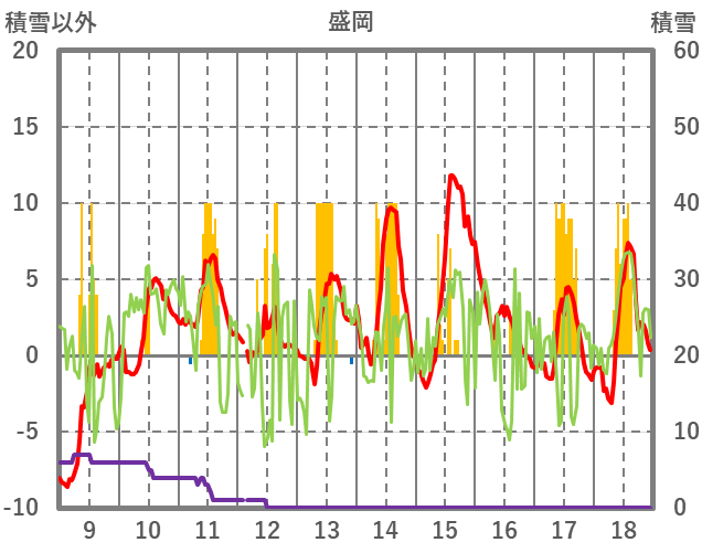 | 日 | 時 | 気温 | 降水 | 風向/風速 | 日照 | 積雪 | 降雪 |