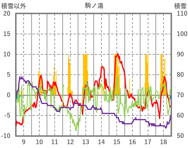 | 日 | 時 | 気温 | 降水 | 風向/風速 | 日照 | 積雪 | 降雪 |