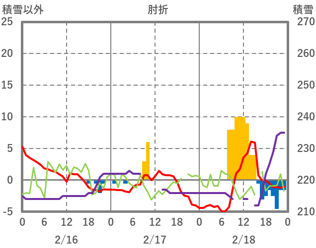 | 日 | 時 | 気温 | 降水 | 風向/風速 | 日照 | 積雪 | 降雪 |