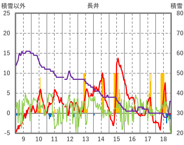| 日 | 時 | 気温 | 降水 | 風向/風速 | 日照 | 積雪 | 降雪 |