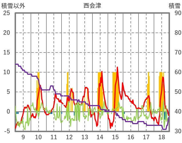 | 日 | 時 | 気温 | 降水 | 風向/風速 | 日照 | 積雪 | 降雪 |
