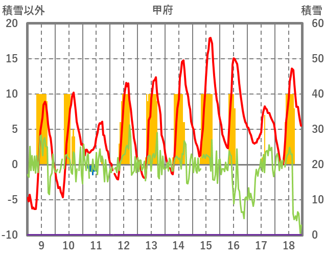 | 日 | 時 | 気温 | 降水 | 風向/風速 | 日照 | 積雪 | 降雪 |