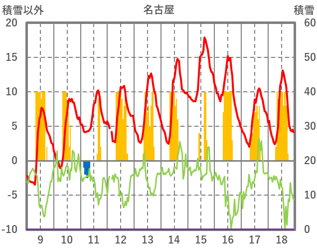 | 日 | 時 | 気温 | 降水 | 風向/風速 | 日照 | 積雪 | 降雪 |