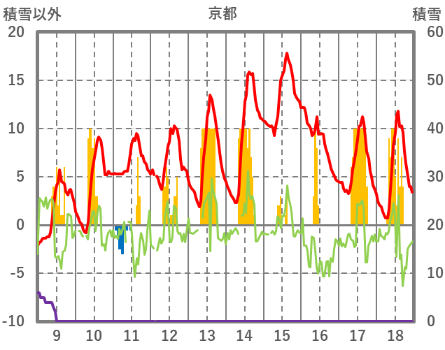 | 日 | 時 | 気温 | 降水 | 風向/風速 | 日照 | 積雪 | 降雪 |
