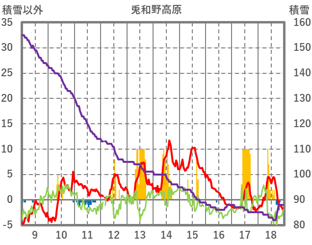 | 日 | 時 | 気温 | 降水 | 風向/風速 | 日照 | 積雪 | 降雪 |